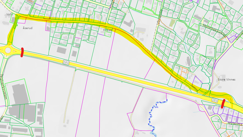 FV283 will be closed at night due to the installation of a new pedestrian bridge (Vinnes bru). The closures are effective from 22:00 to 06:00 on the following dates: 7, 13, 14, and 15 January.