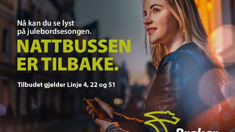 Nattbussen i gang til julebordsesongen Fra 19. november kjører Brakar nattbuss i Drammen igjen. – Julebordsesongen starter for fullt nå, og vi er klare til å frakte folk trygt og billig hj... Publisert 15.11.2021 kl. 12:39