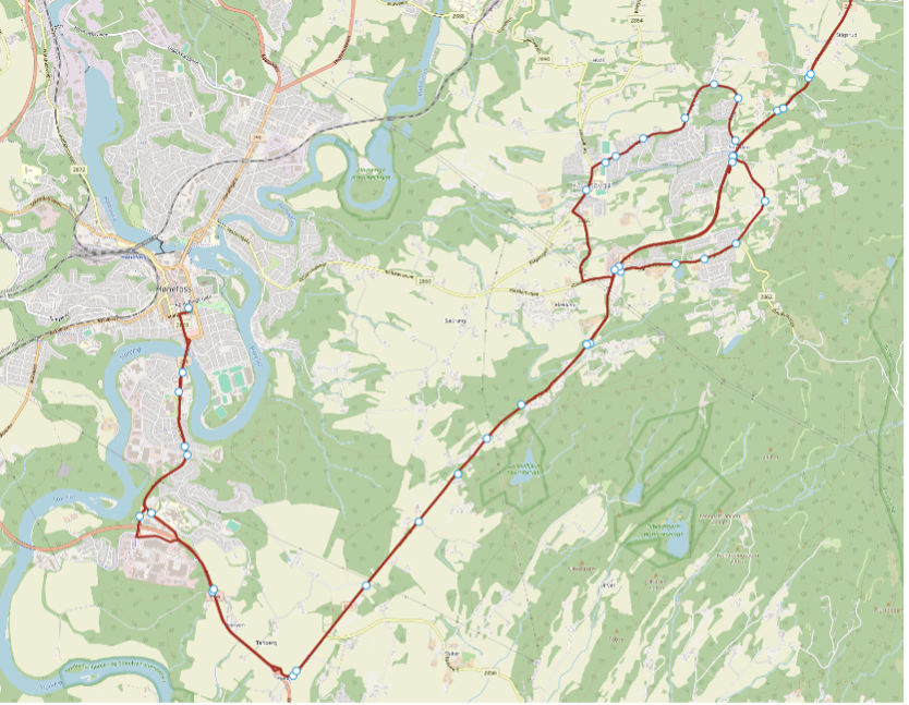 - Hvitbrua - nærmeste holdeplass Hønefoss sentrum