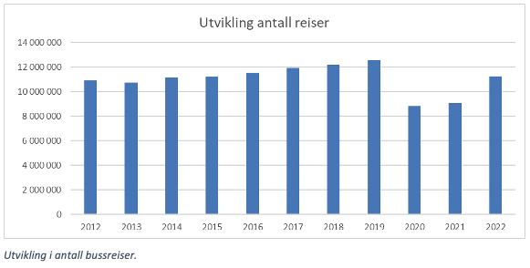 Ringerike og Hole hadde totalt 1,28 millioner reiser i 2022. Dette tilsvarer en nedgang på 8 prosent mot 2019, men bare 2,2 prosent de siste tre månedene av året.